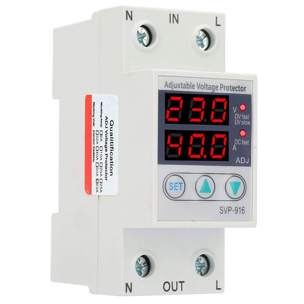 Protect your electrical appliances from dangerous voltage fluctuations with this high-precision 63A adjustable voltage protector. Designed for DIN rail mounting, it features a digital display for voltage and current, user-configurable protection limits, and recovery delays. Ideal for both residential and industrial use, it ensures consistent operation and safety by disconnecting the load during over-voltage, under-voltage, or over-current events. Its robust build, reliable performance, and adjustable settings make it a dependable solution for sensitive electronic systems.