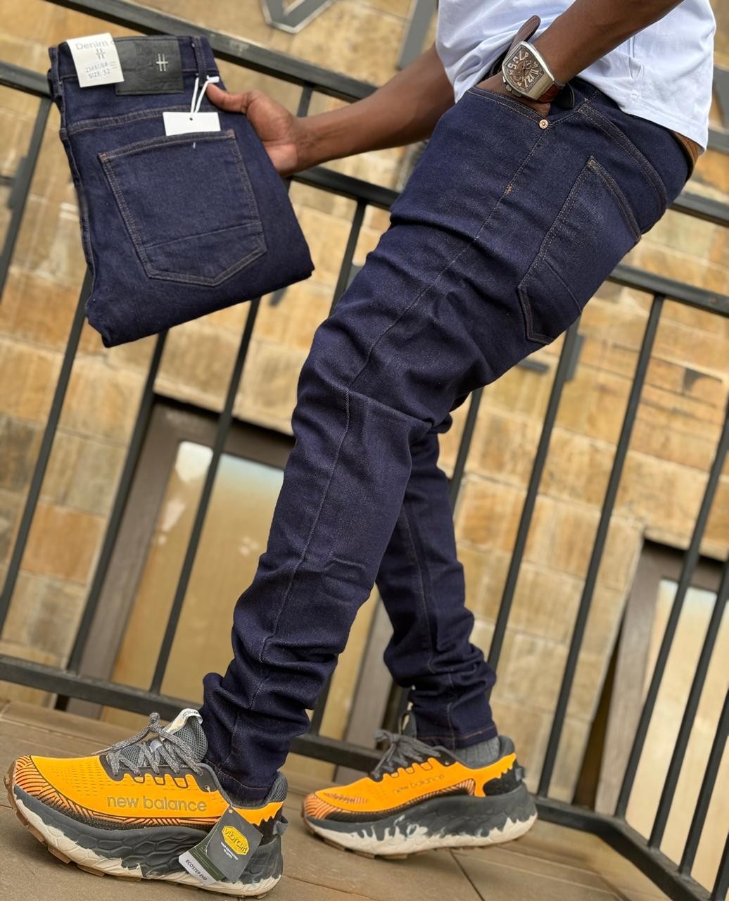 Description: Elevate any wardrobe with these stylish, deep black denim jeans. Featuring a modern flat finish and a comfortable fit, these jeans are perfect for casual wear or dressing up. A branded patch is visible on the back pocket, adding a touch of exclusivity.